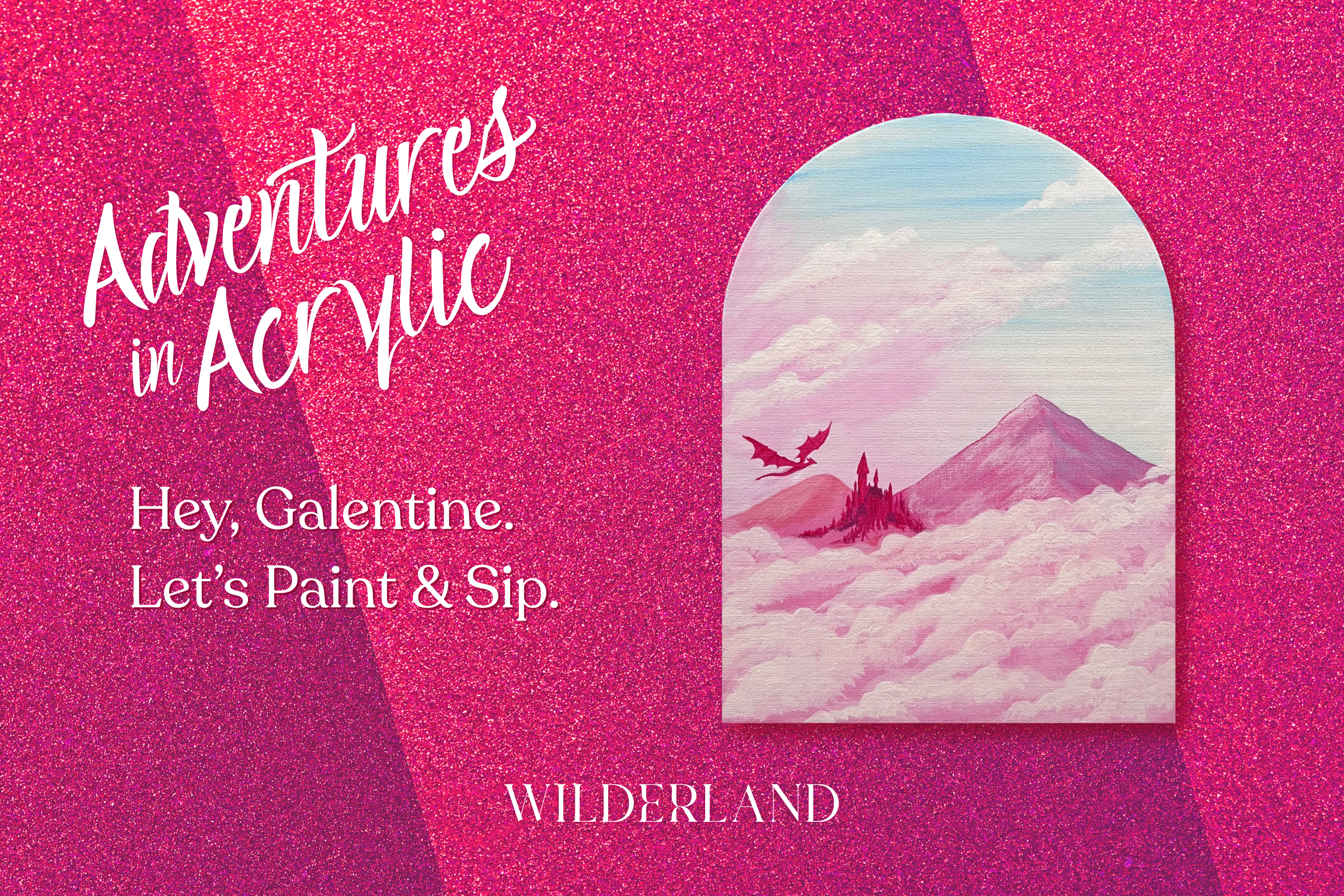 Celebrate Galentine’s with a cozy fantasy paint & sip on February 8, 2026. This beginner-friendly, guided session invites you to paint a dreamy landscape on an arch-shaped canvas while enjoying sweet treats and handcrafted espresso + matcha drinks.
